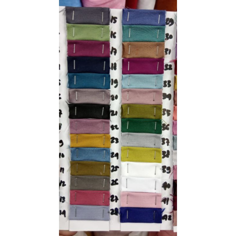 Katalog warna kain toyobo. Di Indonesia toyobo dikenal sebagai salah satu jenis kain katun yang diimpor dari Jepang selain katun Jepang dan inma premium. Beli Kain Toyobo Fodu Online terdekat di Bandung berkualitas dengan harga murah terbaru 2021 di Tokopedia. Kain toyobo merupakan kain katun yang sering dipakai untuk seragam celana gamis jilbab dll.