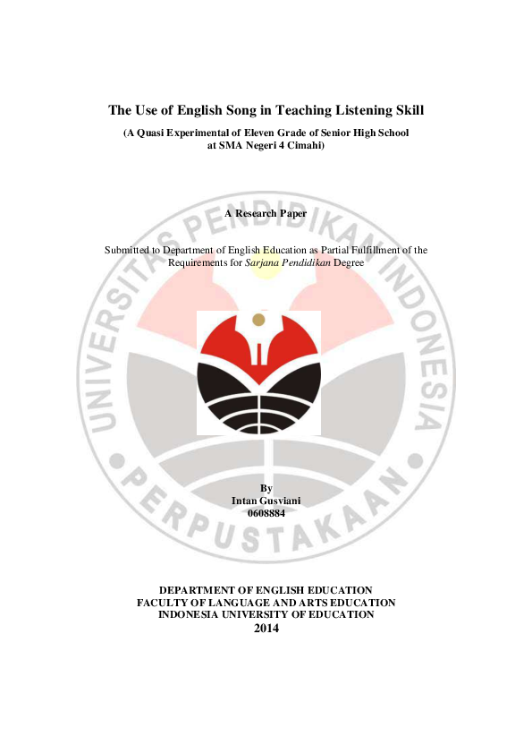 The Skripsi Scientific Paper entitle TIIE EFFECTMNESS OF USING ENGLISH SONGS ON STUDENTS LISTENING ABILITY A QUASI-Experimental Study at the Eight Grade of MTs. Listening skill in eighth grade of junior high school. THE CORRELATION BETWEEN LISTENING AND SPEAKING ABILITIES a Case Study in the Third Grade in One of SMKNs in Bandung THE USE OF MEANING USE AND FORM MUF FRAMEWORK IN TEACHING SPEAKING TO YOUNG LEARNERS A Quasi-Experimental Study in an Elementary School in.