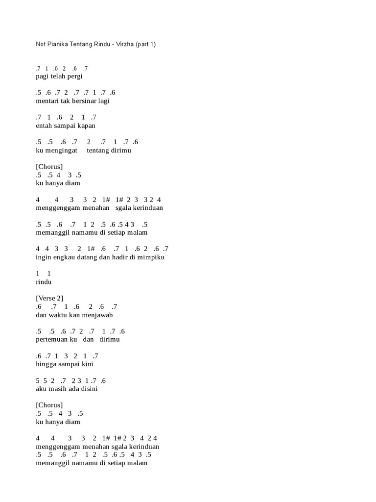 Mentari tak bersinar lagi. Kunci Gitar Virzha - Tentang Rindu. Pemilik nama lengkap Di Muhammad Devirzha ini adalah juara ketiga dari ajang pencarian bakat Indonesian Idol musim kedelapan.